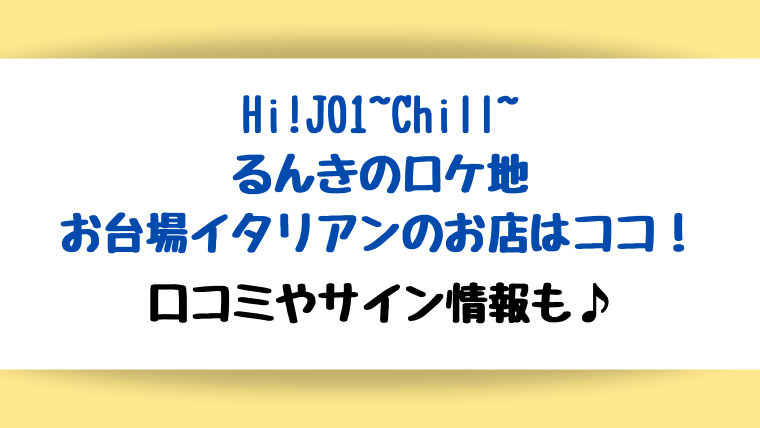 Hi! JO1 Chillるんきロケ地のお台場イタリアンのお店はどこ?口コミやサイン情報をまとめました。